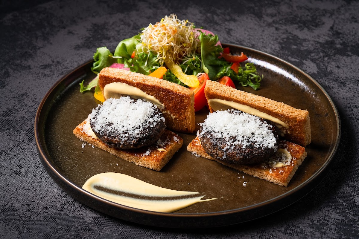 For those who love a good burger with a gourmet twist, Ushi Hana’s special truffle hamburger sandwich (丑花特製トリュフハンバーグサンド) is a must-try. The truffle adds a luxurious depth to the juicy patty, creating a flavor profile that’s both earthy and indulgent.
